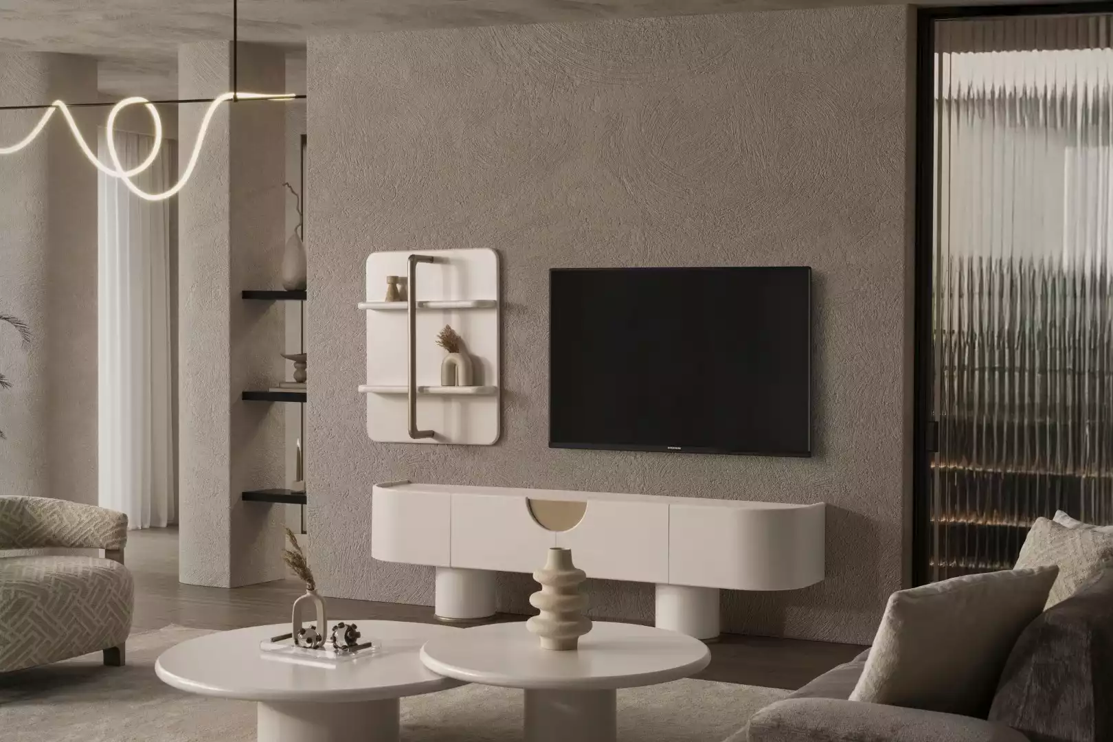 İznik TV ünitesi, modern yaşam alanlarına şıklık ve fonksiyonellik katmak için tasarlanmıştır. Duvara monte edilen yapısıyla yerden tasarruf sağlarken, geniş depolama alanıyla da eşyalarınızı düzenli tutmanıza yardımcı olur. Özenle seçilmiş malzemeler ve işçilikle üretilen bu TV ünitesi, uzun yıllar boyunca size hizmet verecek dayanıklılığa sahiptir.